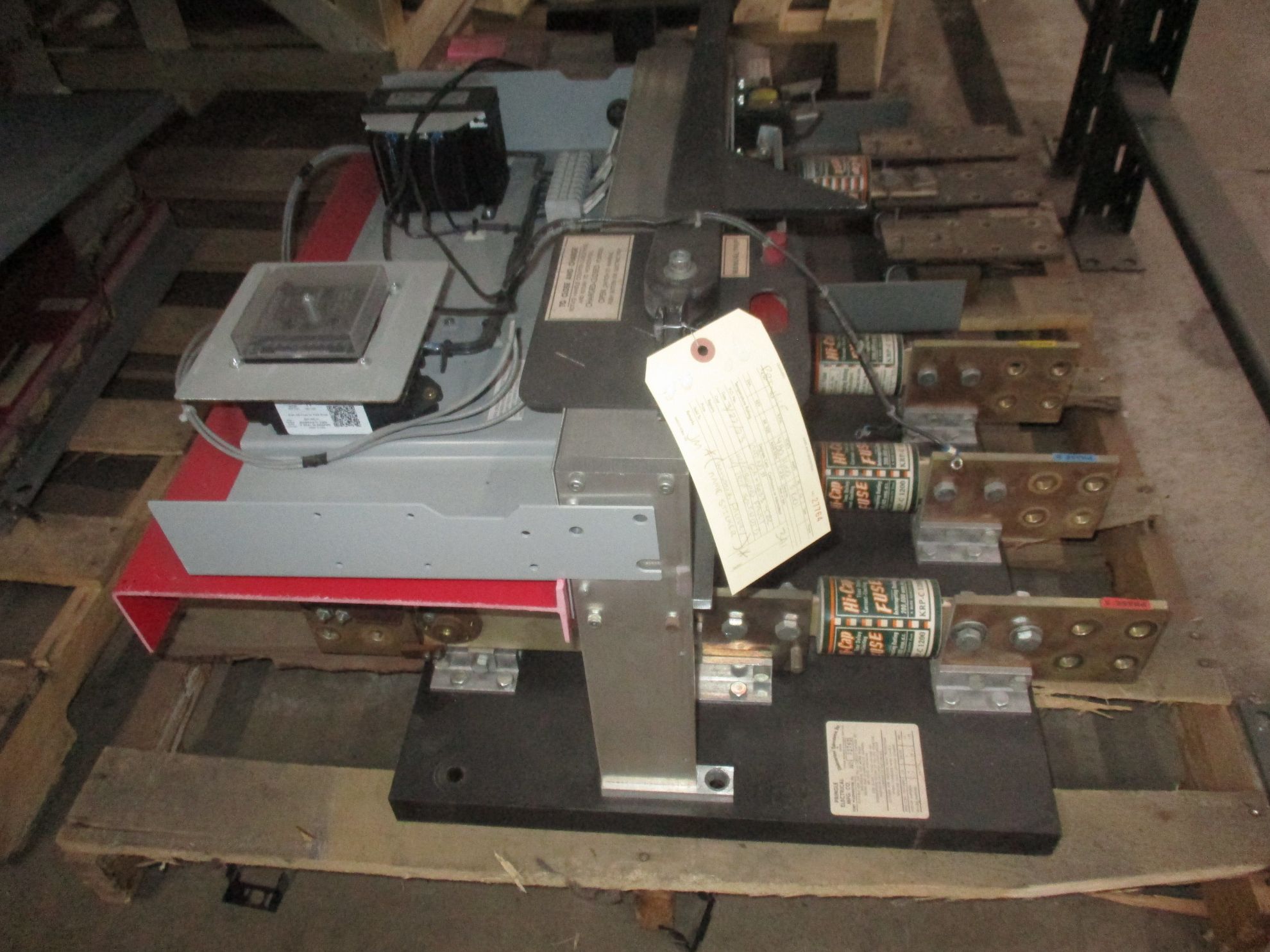 Pringle QA-1633-CBC Pressure Contact Switch: 1600 amp, 480 volt, 3 pole, 60 Hz, 120 volt shunt trip, ground fault, black back plate. Sold used electrically OK. Fuses sold separately.