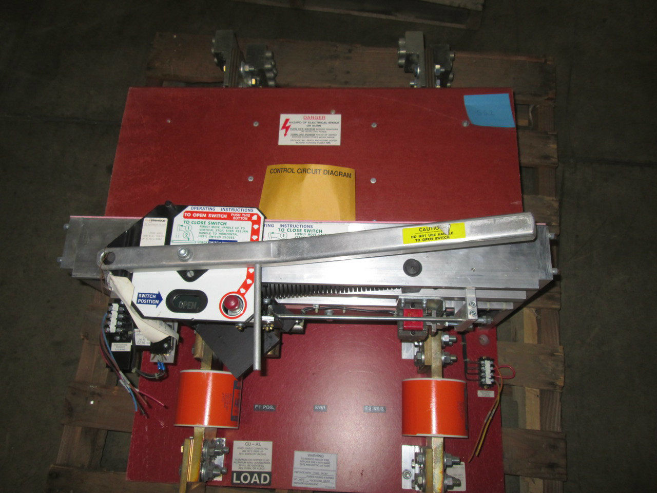 Pringle SA-3175 Pressure Contact Switch; 2500 amp, 600 volt DC, 3 pole, red back plate, 120 volt shunt trip. Sold used electrically OK. Fuses sold separately.